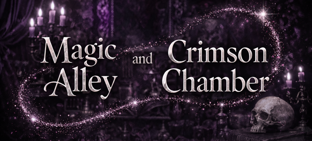 Magic Alley and The Crimson Chamber share the same love of immersive storytelling and atmosphere, but they offer two distinct experiences. Magic Alley is our enchanted gift shop and family-friendly home of seasonal magic, a place of wonder, curiosities and enchantment for all ages.